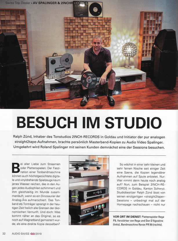Wir luden bereits Lothar Brandt den Redaktor der Zeitschrift "Audio" und "Swiss Audio" zu einem ersten Rundgang durch die Räumlichkeiten bei 2INCH-RECORDS in Arth Goldau. Er war extrem begeistert im Q 3 2019 erschien der Bericht im Swiss Audio siehe unten.